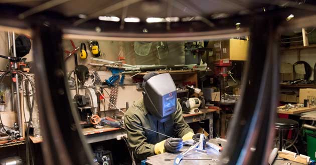 Upon visiting his workshop strung from top to bottom with bicycle cast-offs and the favored tools of his trade it’s not surprising to hear that Andy has been fostering his passion for wheels since childhood. What began as a skateboarding habit gave way to BMX riding and then grew into racing.