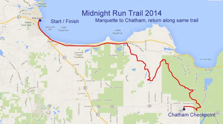 Coinciding with the U.P 200 is the eight-dog Midnight Run, a race from Marquette to Munising, Michigan with a checkpoint in Chatham. The Midnight Run, or MNR, draws premier teams wanting to test their skill on a technically challenging trail.