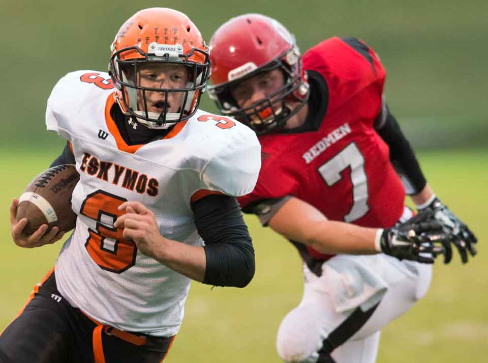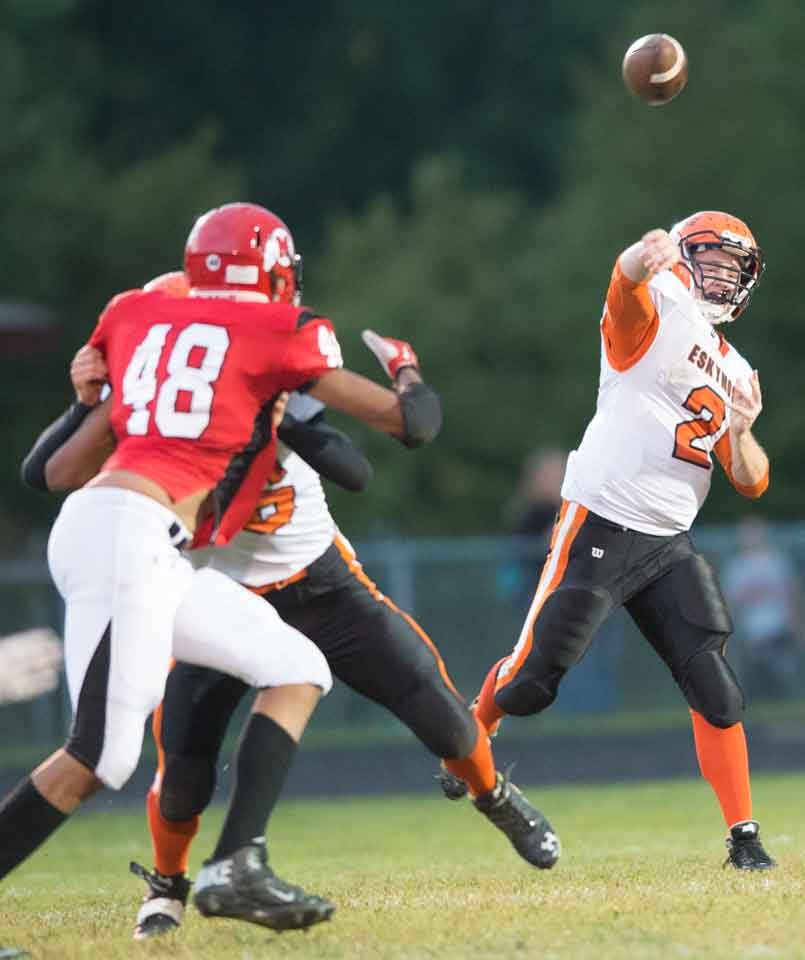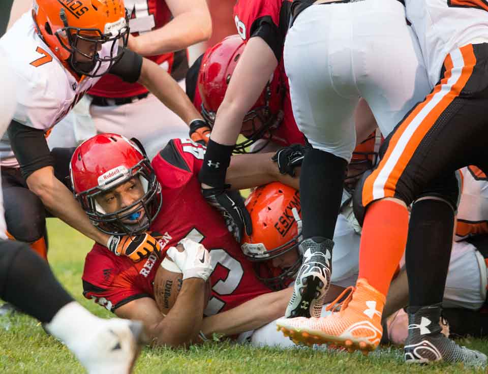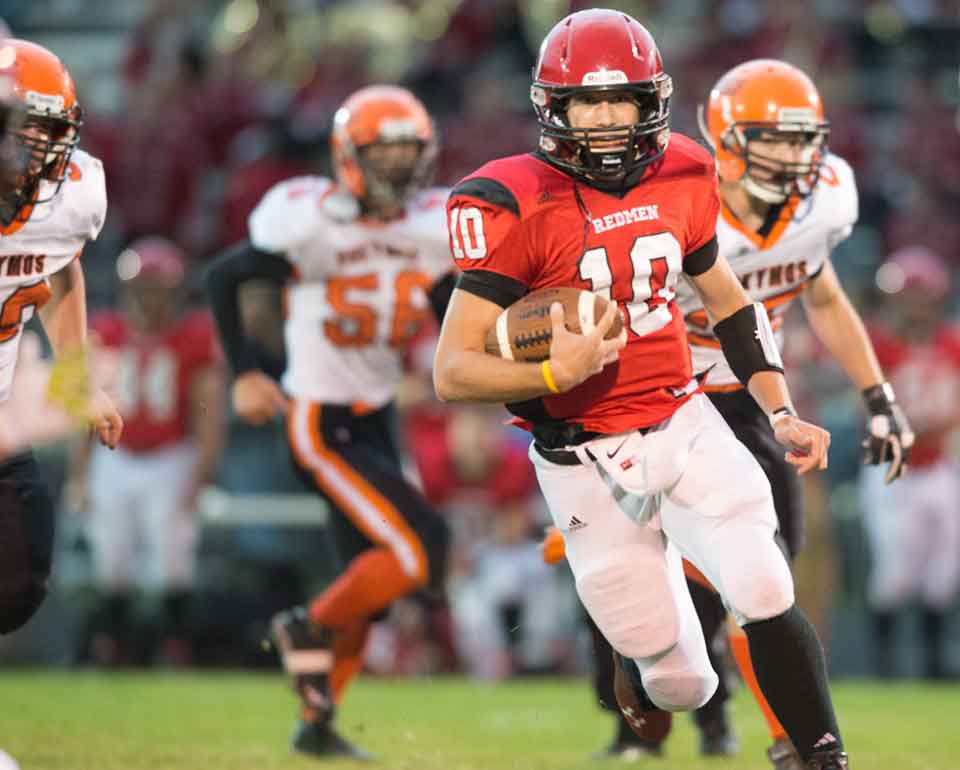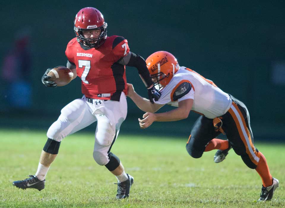 Marquette, MI – The Marquette Redmen varsity football team hosted the Escanaba Eskymos Friday September 19, 2014 on their home field. Plans for a comeback against Marquette fell short for the Eskymos as the Redmen held their lead with a close final quarter score of 24-22.