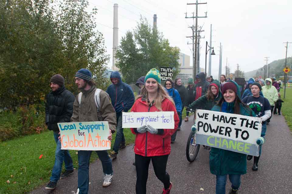 Marquette, MI – Residents from Marquette and around the U.P. came together to take local action on a global issue today as part of the larger People’s Climate March movement happening around the world. Despite rain and cold weather families and NMU students showed up Sunday September 21, 2014 to participate in a march from the South Marquette Power Plant to the Presque Isle Power Plant to help promote climate awareness in our community.
