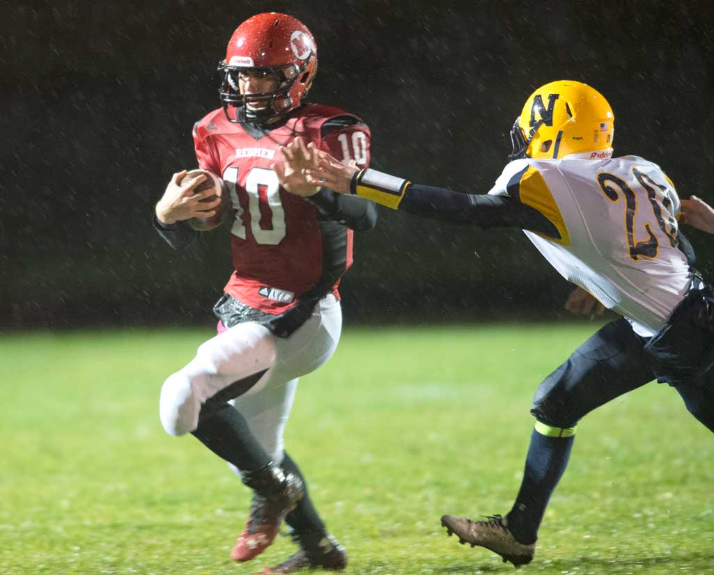 Marquette, MI – The skies poured down on Marquette’s homecoming football game against the Negaunee Miners Friday, October 17, 2014. Despite rain, wind, and 30 something degrees fans filled the bleachers to fuel the fire of competition between these two long-time rivals.