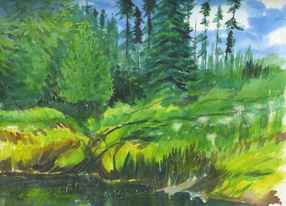 KH: I was very solitary. I would very happily spend hours in the woods when I wasn’t doing my barn chores or my homework. I was always running away to find a spot where I could be uninterrupted for reading or making drawings or writing. I was sure I was going to be an artist from my earliest age.