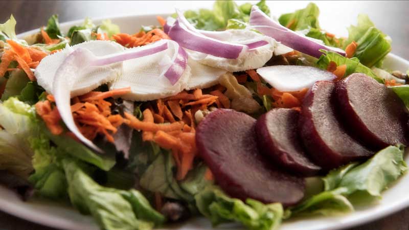 The Vierling offers several hearty salads for lunch like this goat cheese salad with walnuts and beets. (photo by Ron Caspi)