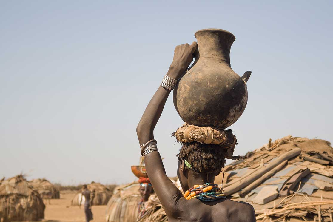 Woman in many developing countries walk long distances to get water like this woman from Ethiopia who carries a water container on her head.